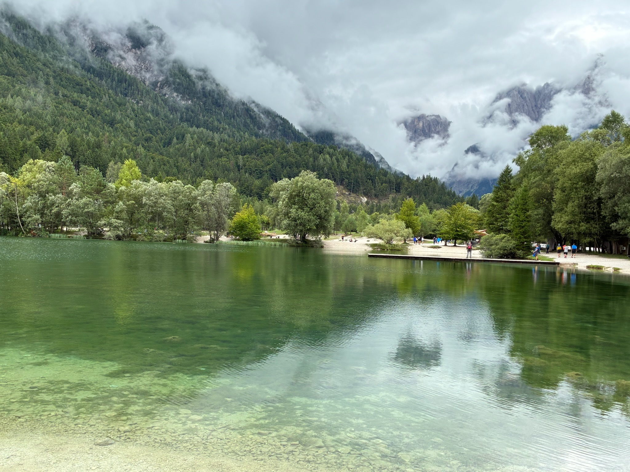 À Kranjska Gora, petit détour non prévu jusqu'au magnifique lac Jasna. Nous décidons de nous arrêter pour manger à Kranjska Gora.