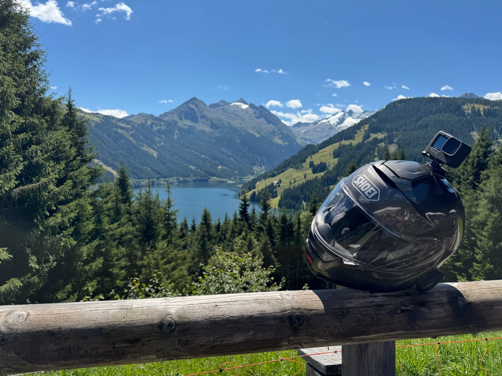 C'est une superbe route avec de magnifiques points de vue, en particulier sur le lac de Gerlos créé par un barrage. Nous nous arrêtons à un café avec une superbe terrasse sur le bord de la route pour une pause face au lac !