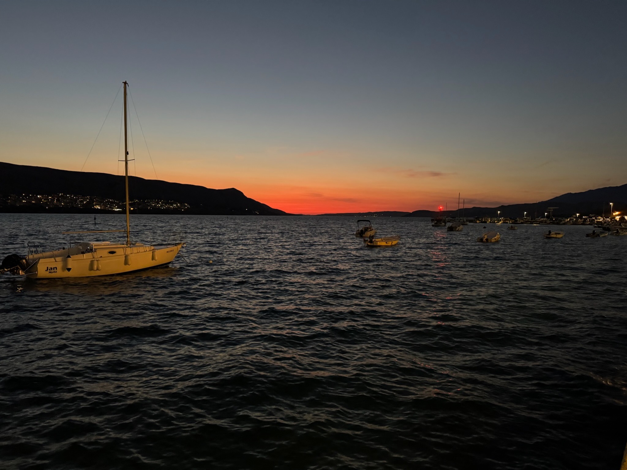 Le soir : visite de Pag qui est une petite ville assez tranquille et plutôt jolie. Magnifique coucher de soleil sur le bras de mer.