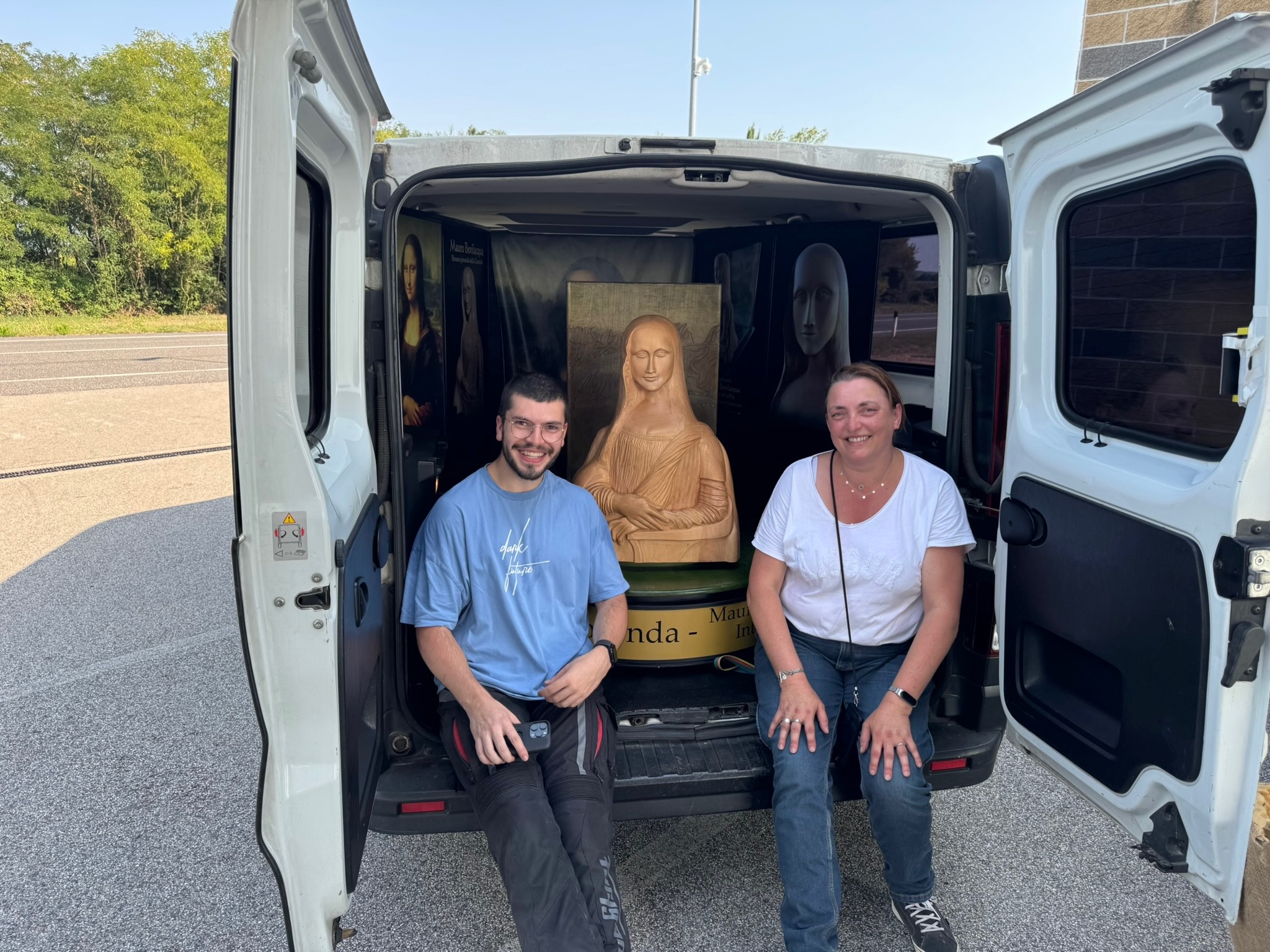 Petit instant rigolo à une station-service : un monsieur nous aborde pour nous montrer... la Joconde qu'il trimballe à l'arrière de sa voiture, on prend des photos. Il n'a rien à nous vendre juste nous montrer sa Joconde.