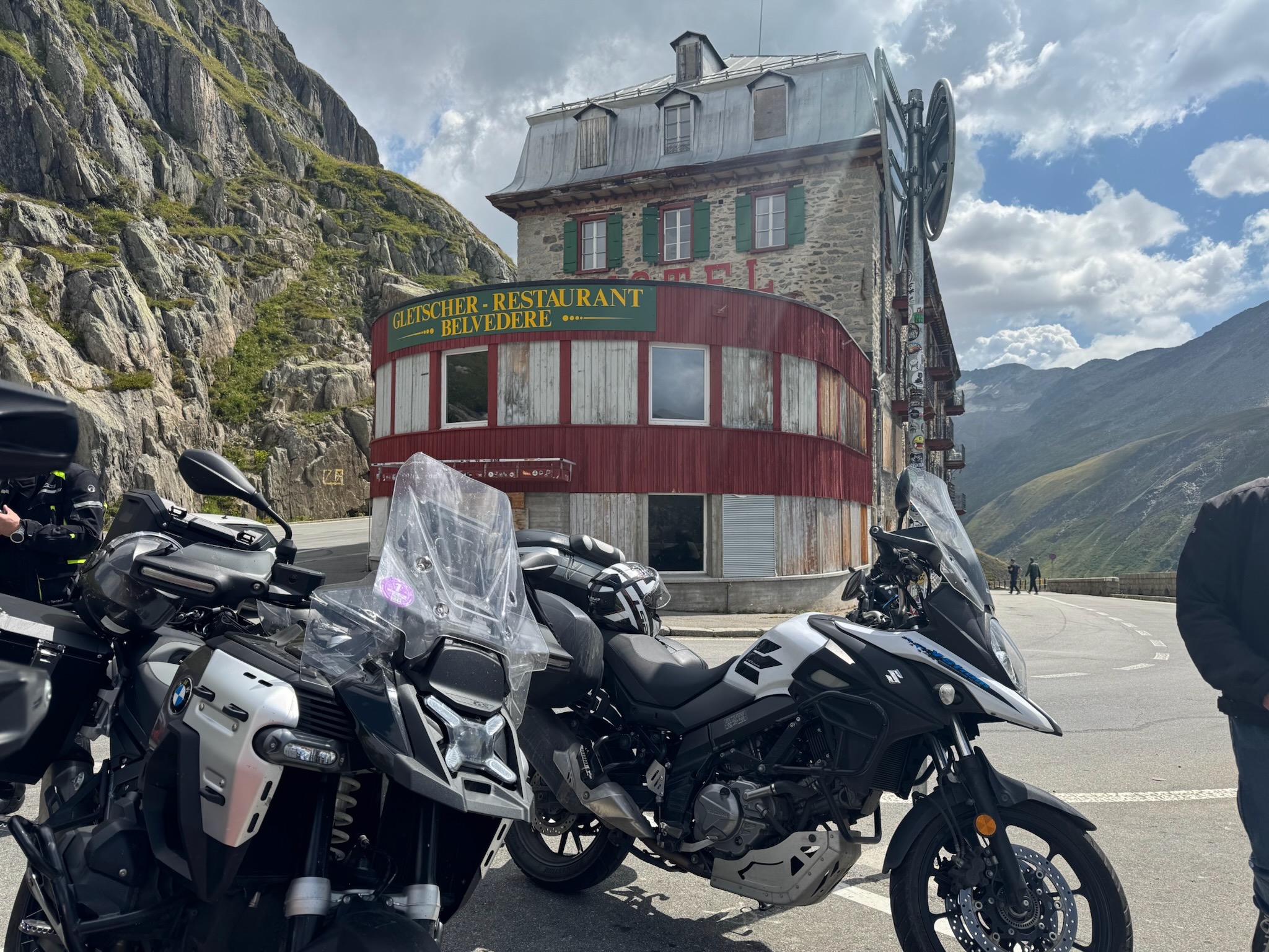 Nous n'oublions pas la pause dans la descente au mythique hôtel du Belvédère, puis nous filons vers le col du Grimsel par une des plus belles routes des Alpes où nous prenons notre repas.